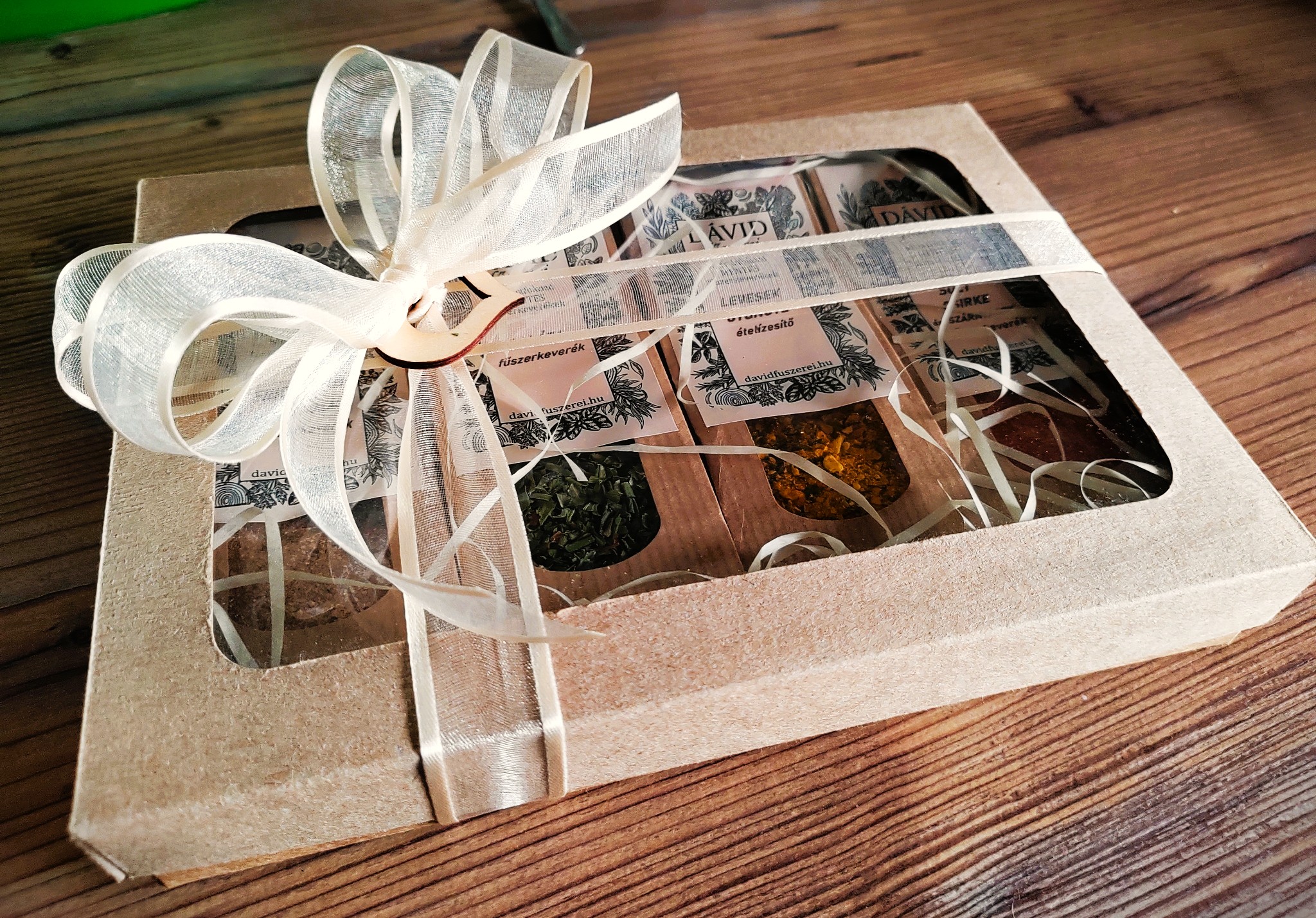 Lepje meg szeretteit, barátait vagy akár cégi ajándék ötletnek is megfelel ajándék csomagunk. Barna papír díszdobozba csomagolva, selyem szalaggal átkötve mindenkinek bizonyára örömet fog okozni 🙂